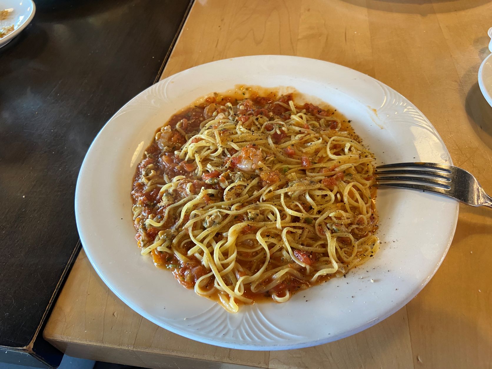 다른 두 명은 하얀색 파스타를 주문했는데, 먹음직스럽게 보이긴 하지만 아직 시도하고 싶지는 않습니다.